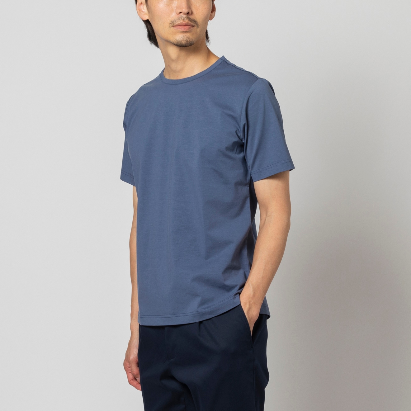 ≪WEB価格≫ノンアイロン/ストレッチ/高通気性/吸水速乾/セミワイド/ブルー/柄無地/シャツ