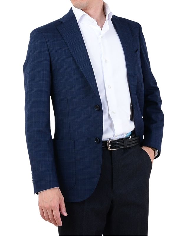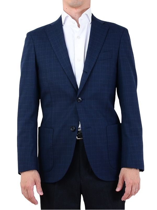 ≪半額SALE≫DRAGO/ドラゴ/段返り3釦/パッチポケット/ネイビー/チェック/ジャケット