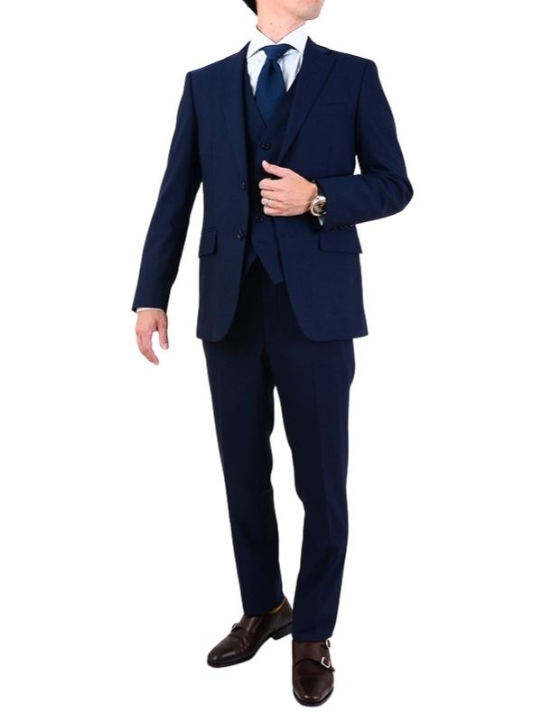 ≪WEB特価≫機能性/洗える/スリーピース/ストレッチ/ネイビー/柄無地/ノータック/秋冬/スーツ