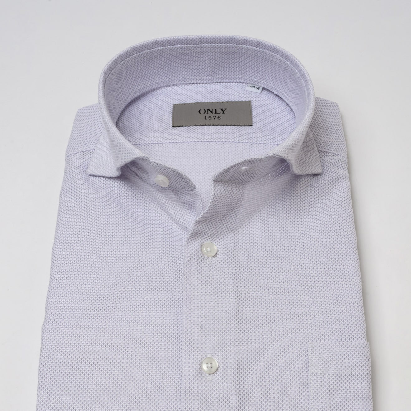 織りの特性としてやや硬めの風合いとなる為、綿100%で液体アンモニア加工を施し、形態安定加工を付与しました。