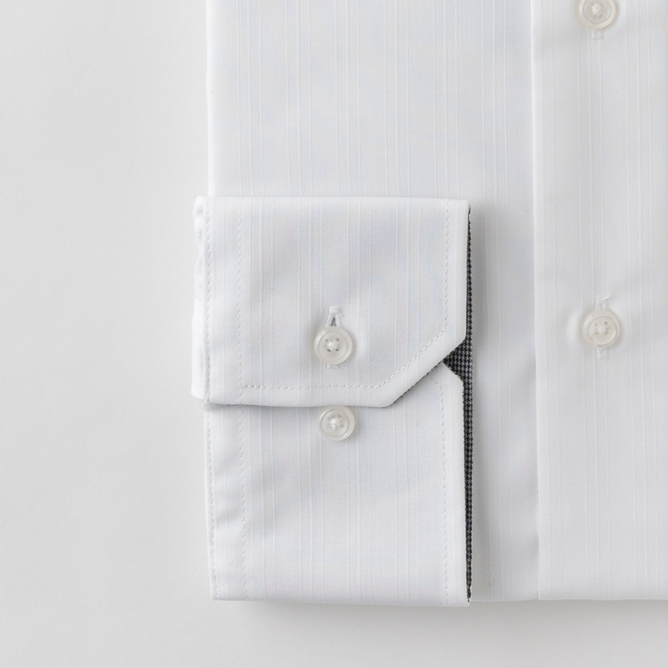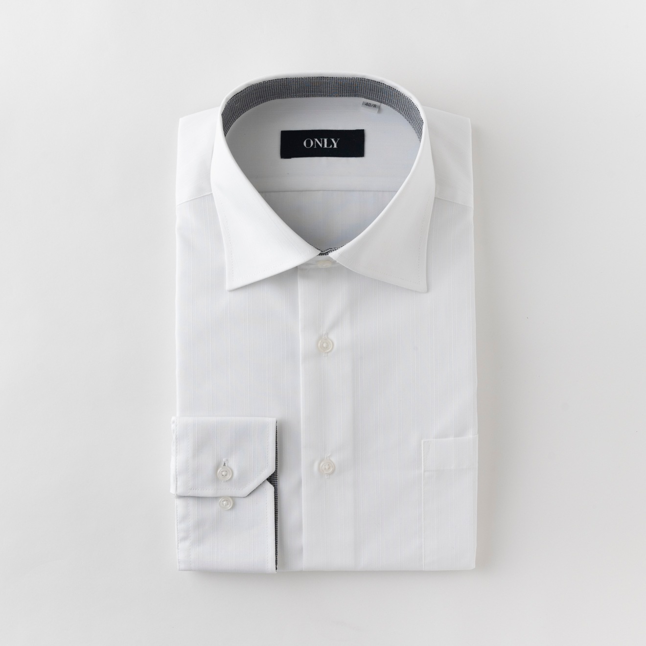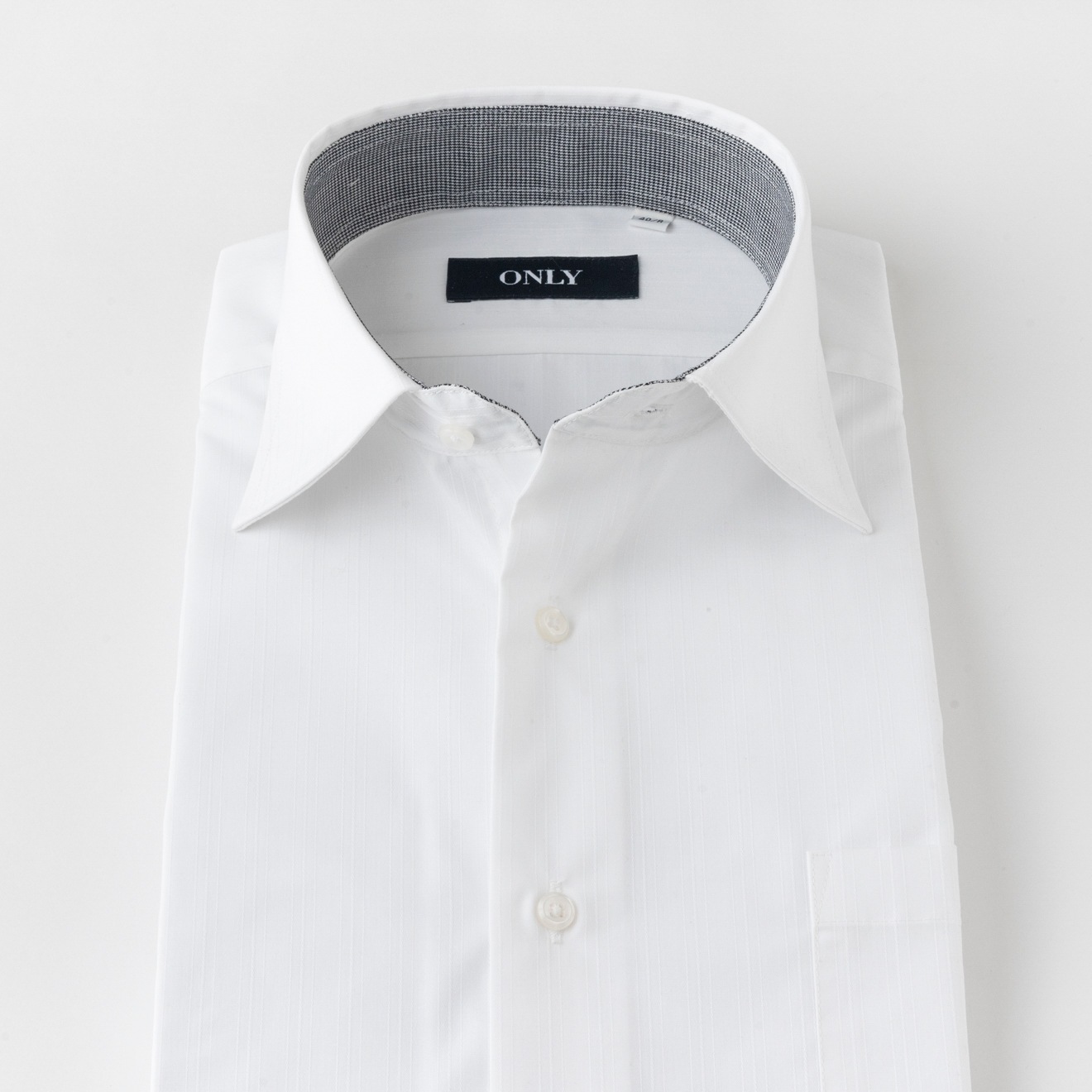 襟裏に別素材を使用したシンプルなセミワイドスプレッドカラーシャツ。
