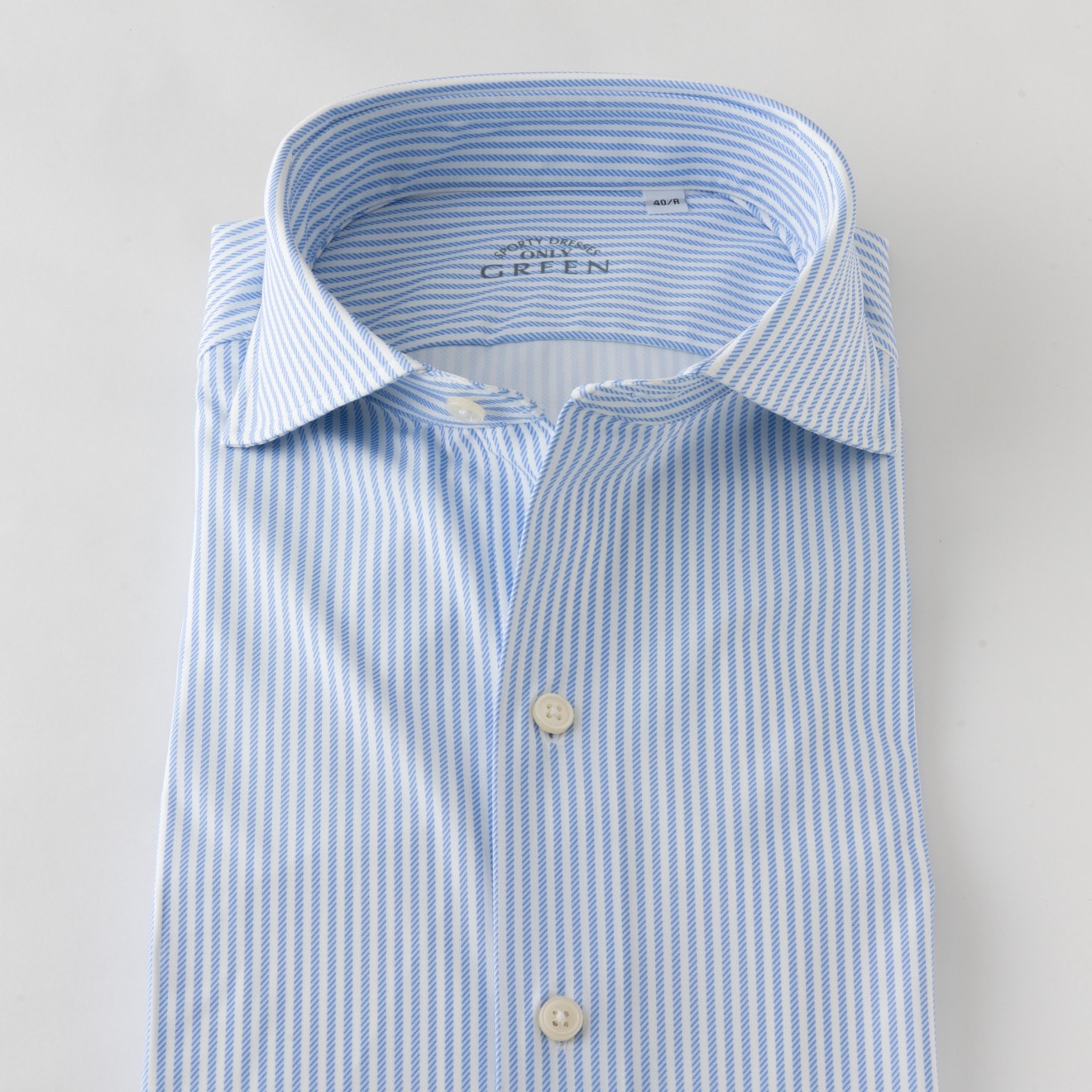 ≪WEB限定≫驚異の伸縮性/GREEN/ホリゾンタル/ブルー/ストライプ/シャツ