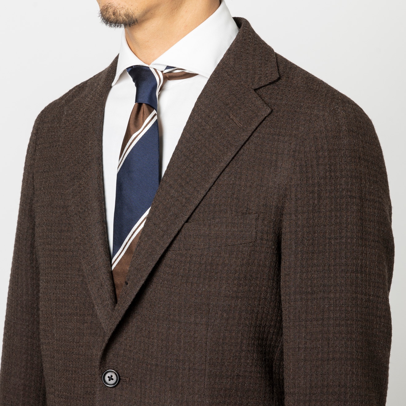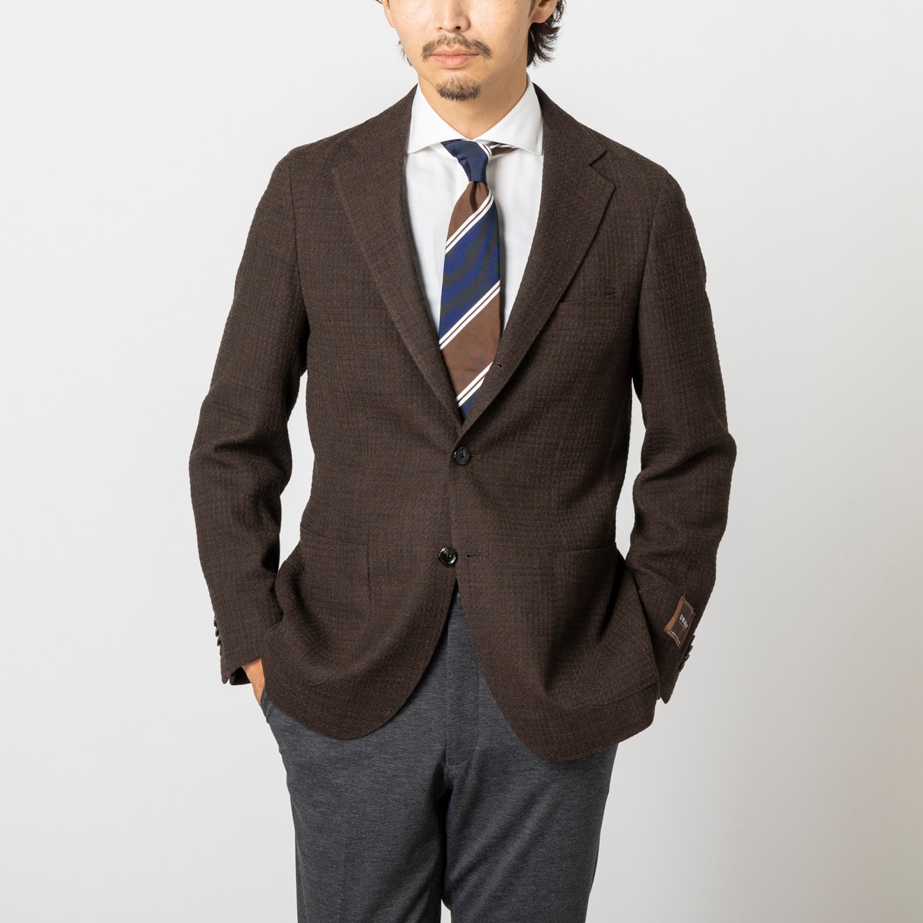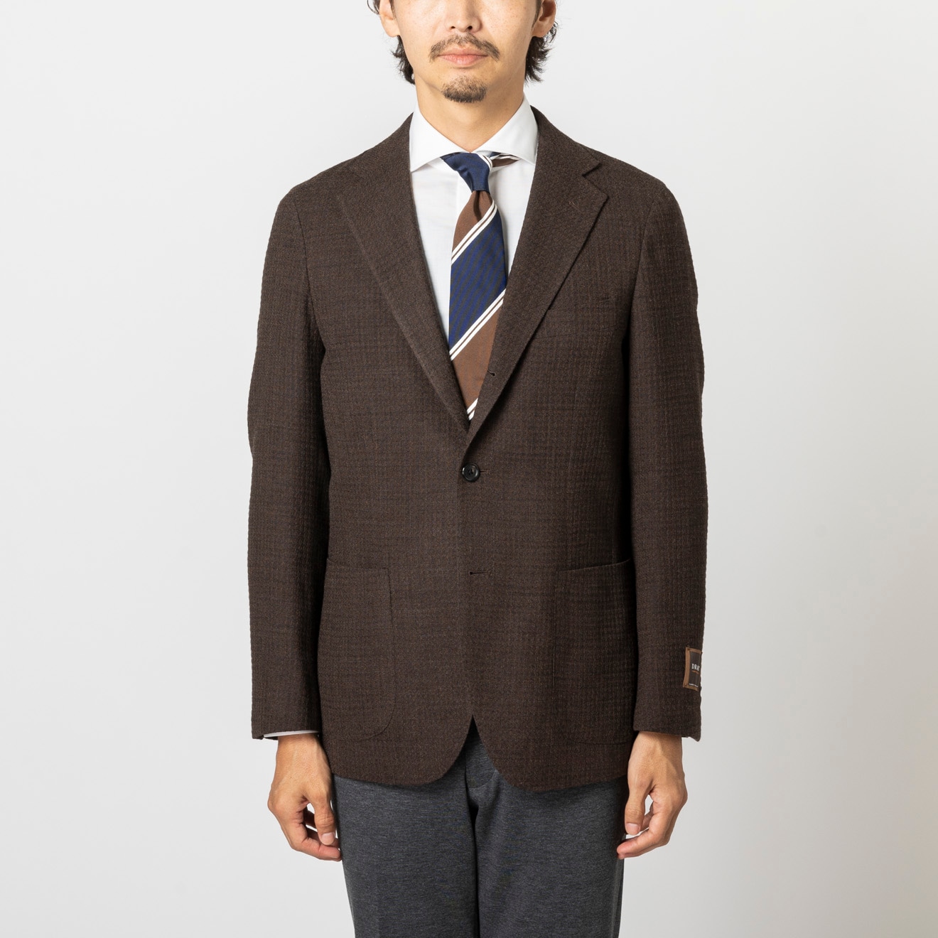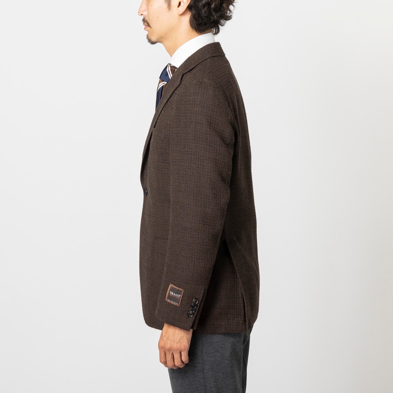 ≪半額SALE≫DRAGO/ドラゴ/段返り3釦/パッチポケット/ブラウン/チェック/ジャケット
