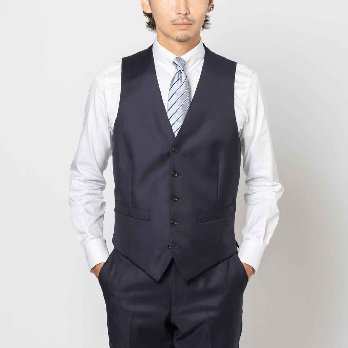 ≪歳末SALE≫2着10%OFF/LORO PIANA/ロロピアーナ/シングル2釦/ワンタックスリムパンツ/ブルー/無地/スーツ
