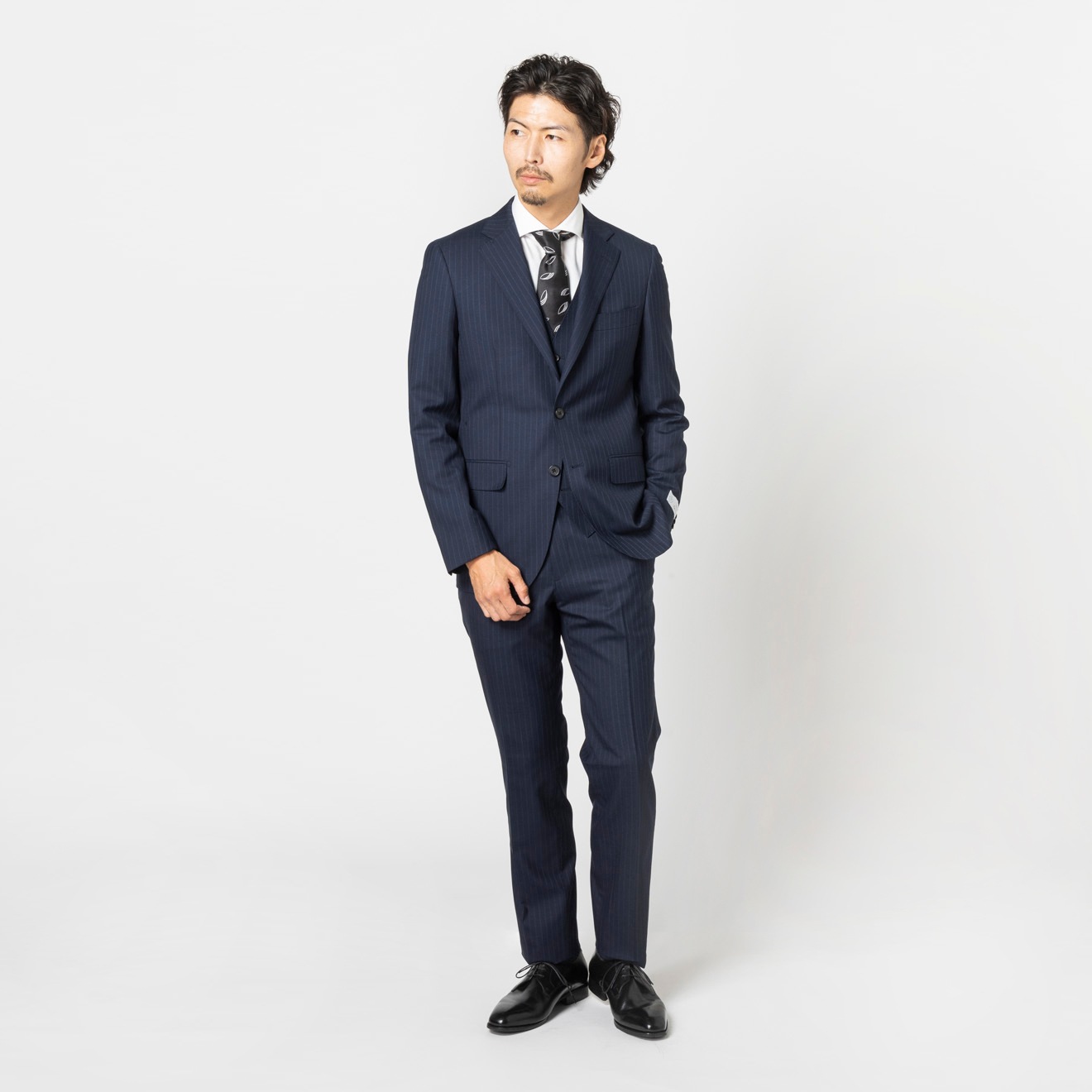 ≪WEB特価≫洗える/スリーピース/ストレッチ/ネイビー/柄無地/ノータック/スーツ