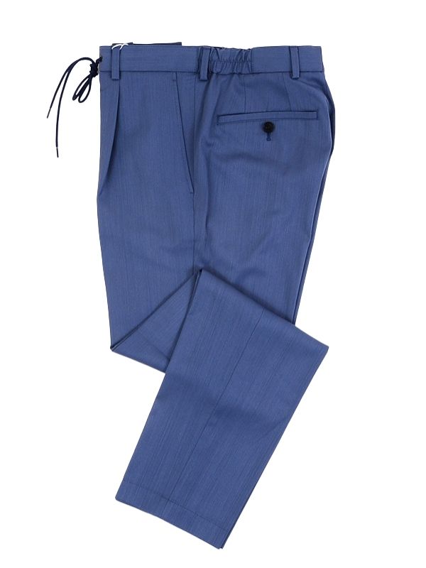 ≪WEB準新作≫シャンブレーコットン/ノータック/裾上げ済/ブルー/無地/パンツ