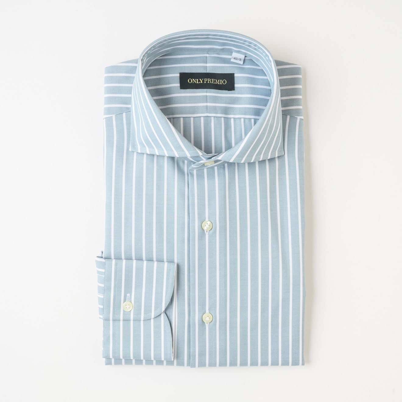 ≪WEB新作≫PREMIO/EASYCARE/形態安定/スリムフィット/ホリゾンタルカラー/ブルー/無地/シャツ