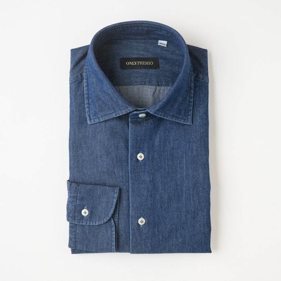 ≪WEB新作≫PREMIO/綿100%/ドレスデニムシャツ/ノンアイロン/レギュラー/ネイビー/無地/シャツ