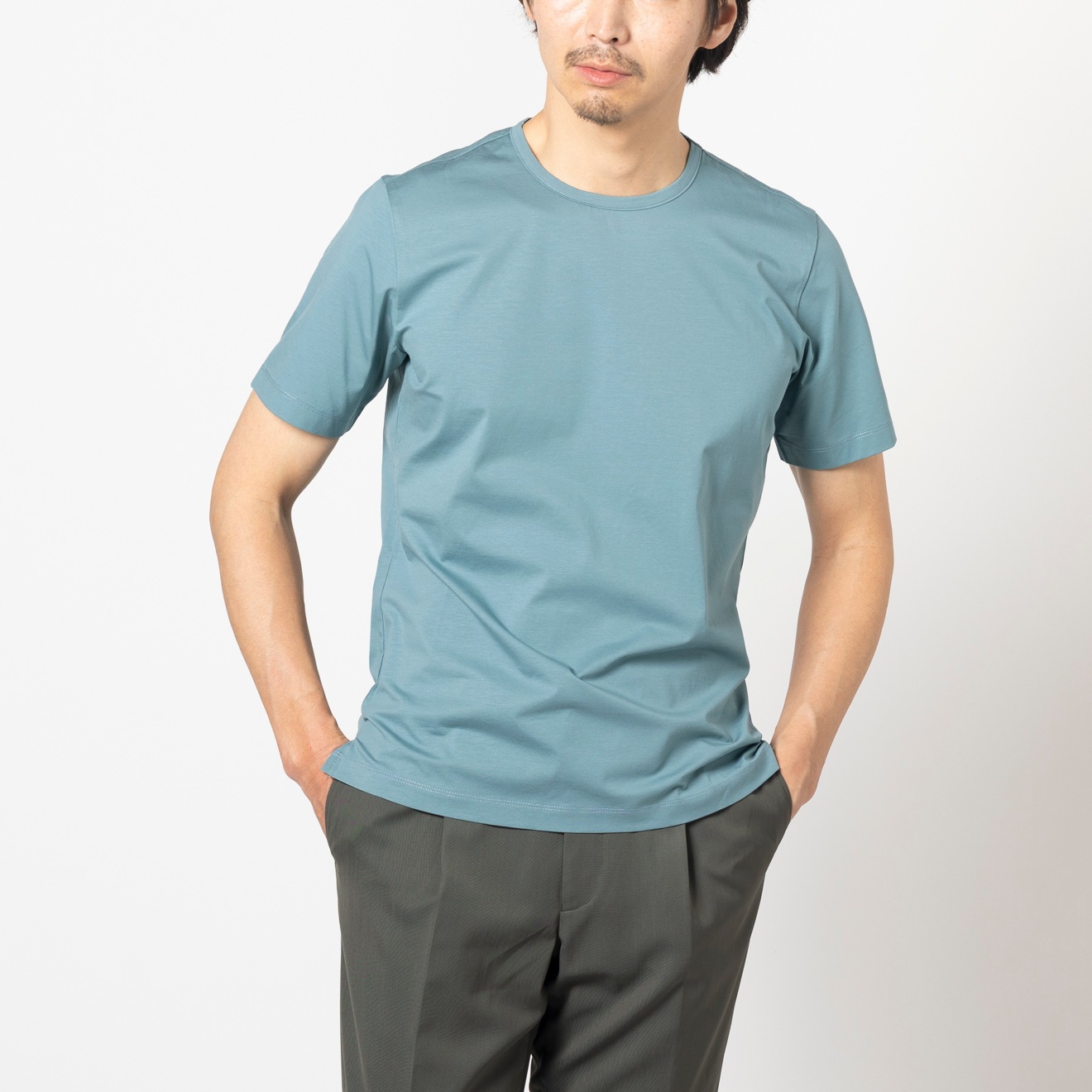 ≪WEB価格≫ノンアイロン/ストレッチ/高通気性/吸水速乾/セミワイド/ブルー/柄無地/シャツ