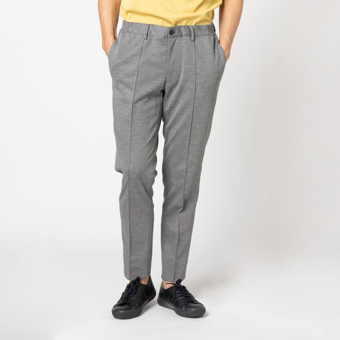 ≪WEB新作≫洗える/ジャージー/防シワ/ストレッチ/裾上げ済/グレー/柄無地/パンツ