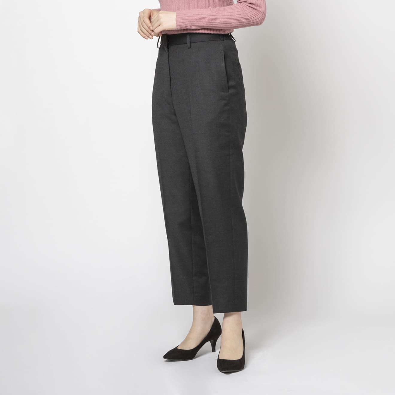 ≪WEB新作≫スケールオフ/ウール/洗える/ワンタック/ドローコード/裾上げ済/グレー/柄無地/パンツ