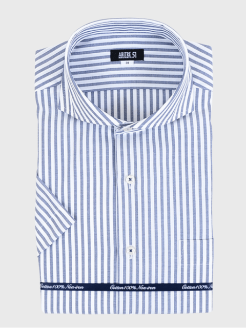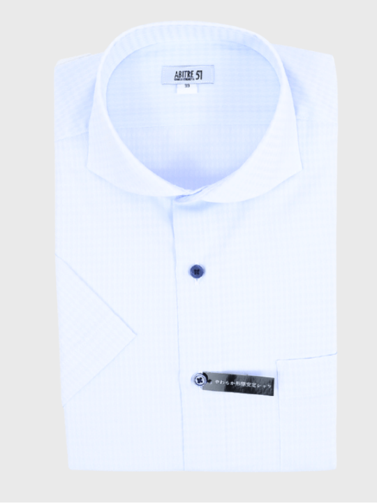 ≪WEB新作≫半袖/形態安定/やわらか/カッタウェイ/ブルー/柄無地/シャツ