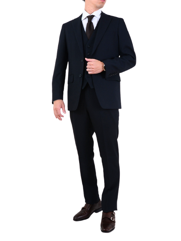 ≪WEB特価≫機能性/洗える/スリーピース/ストレッチ/ネイビー/柄無地/ノータック/秋冬/スーツ