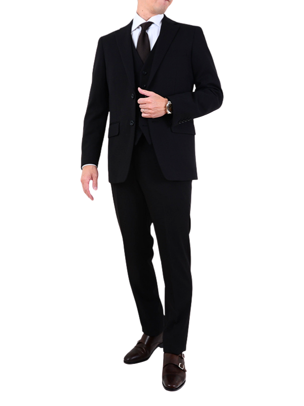 ≪WEB特価≫機能性/洗える/スリーピース/ストレッチ/ネイビー/柄無地/ノータック/秋冬/スーツ