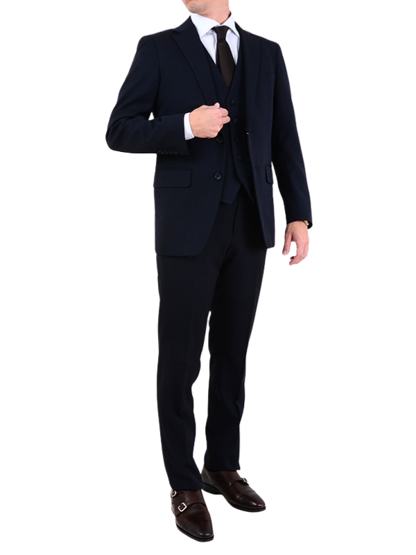 ≪WEB特価≫洗える/スリーピース/ストレッチ/ネイビー/柄無地/ノータック/スーツ