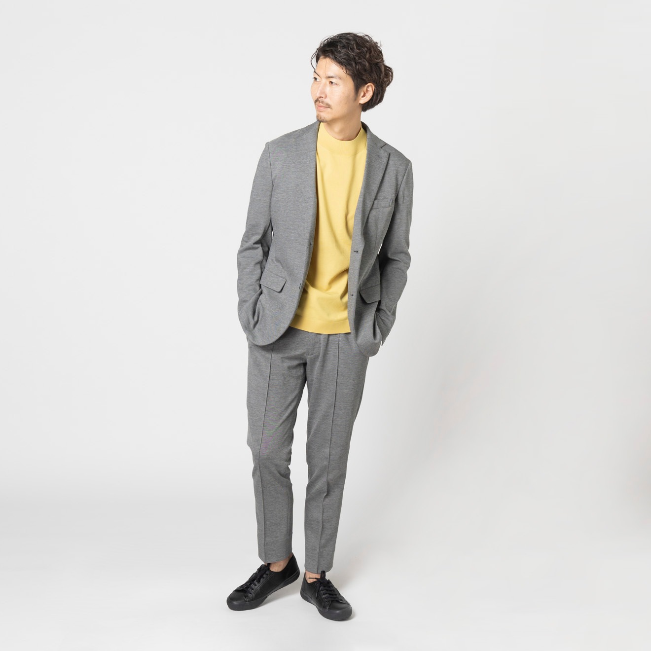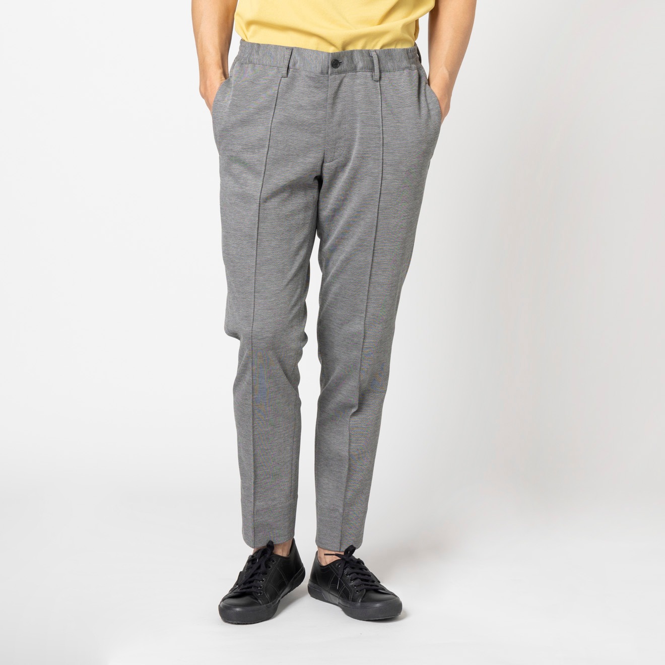 ≪WEB特価≫洗える/ジャージー/防シワ/ストレッチ/裾上げ済/グレー/柄無地/パンツ