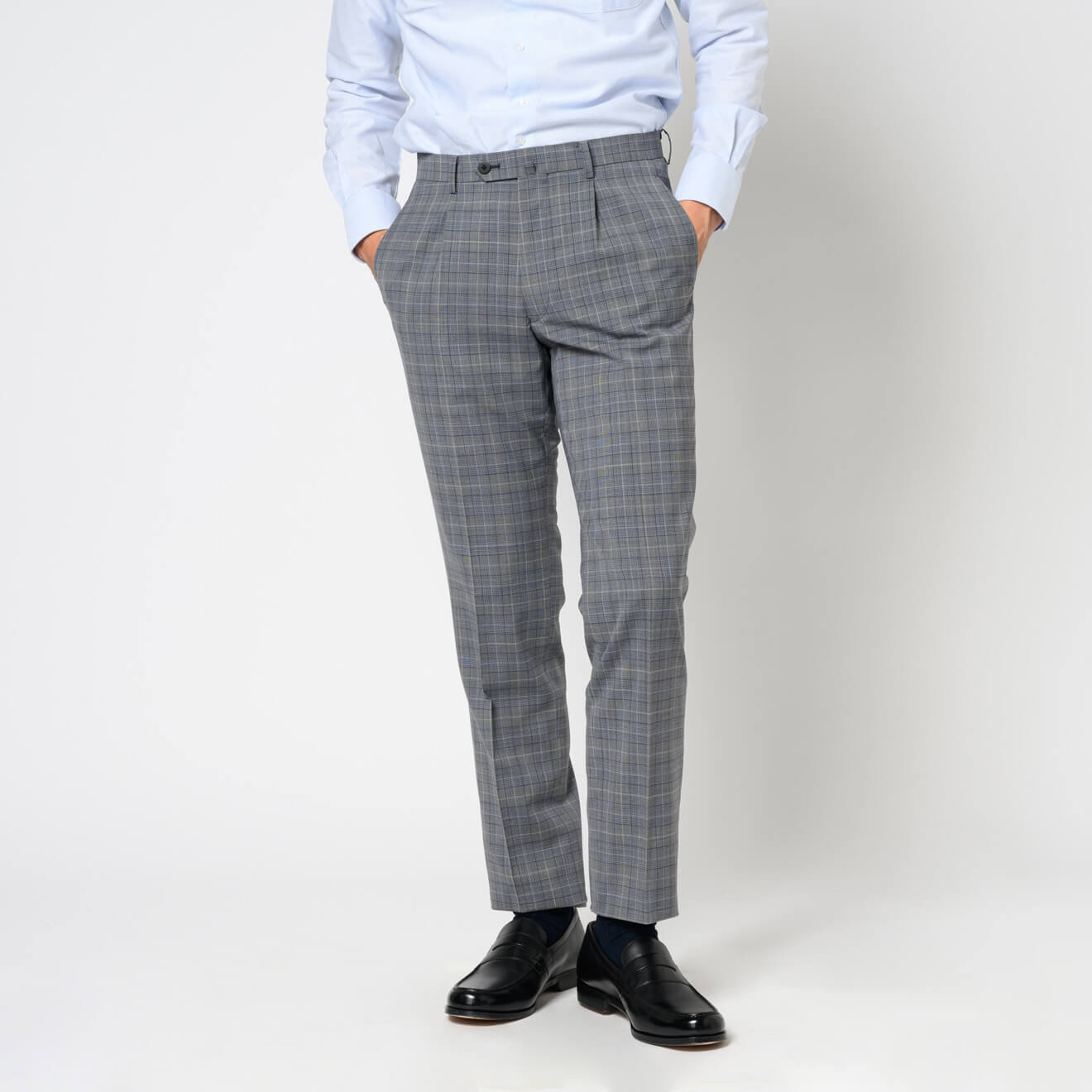 ≪WEB準新作≫シャンブレーコットン/ノータック/裾上げ済/ブルー/無地/パンツ