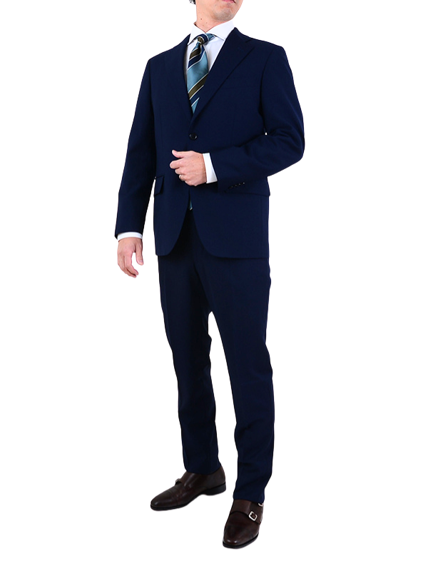 ≪WEB新作≫西川毛織/極トロピカル/軽量性/通気性/シングル2釦/ワンタックスリム/ネイビー/無地/春夏/スーツ