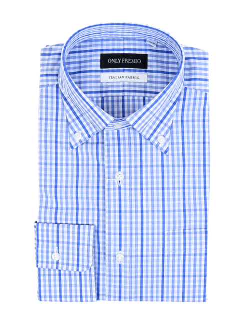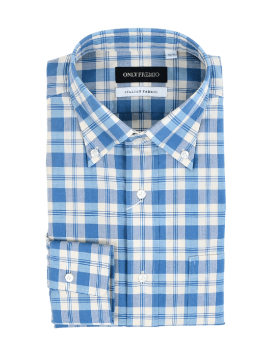 ≪WEB新作≫PREMIO/ITALIAN FABRIC/ボタンダウン/ブルー/チェック/シャツ