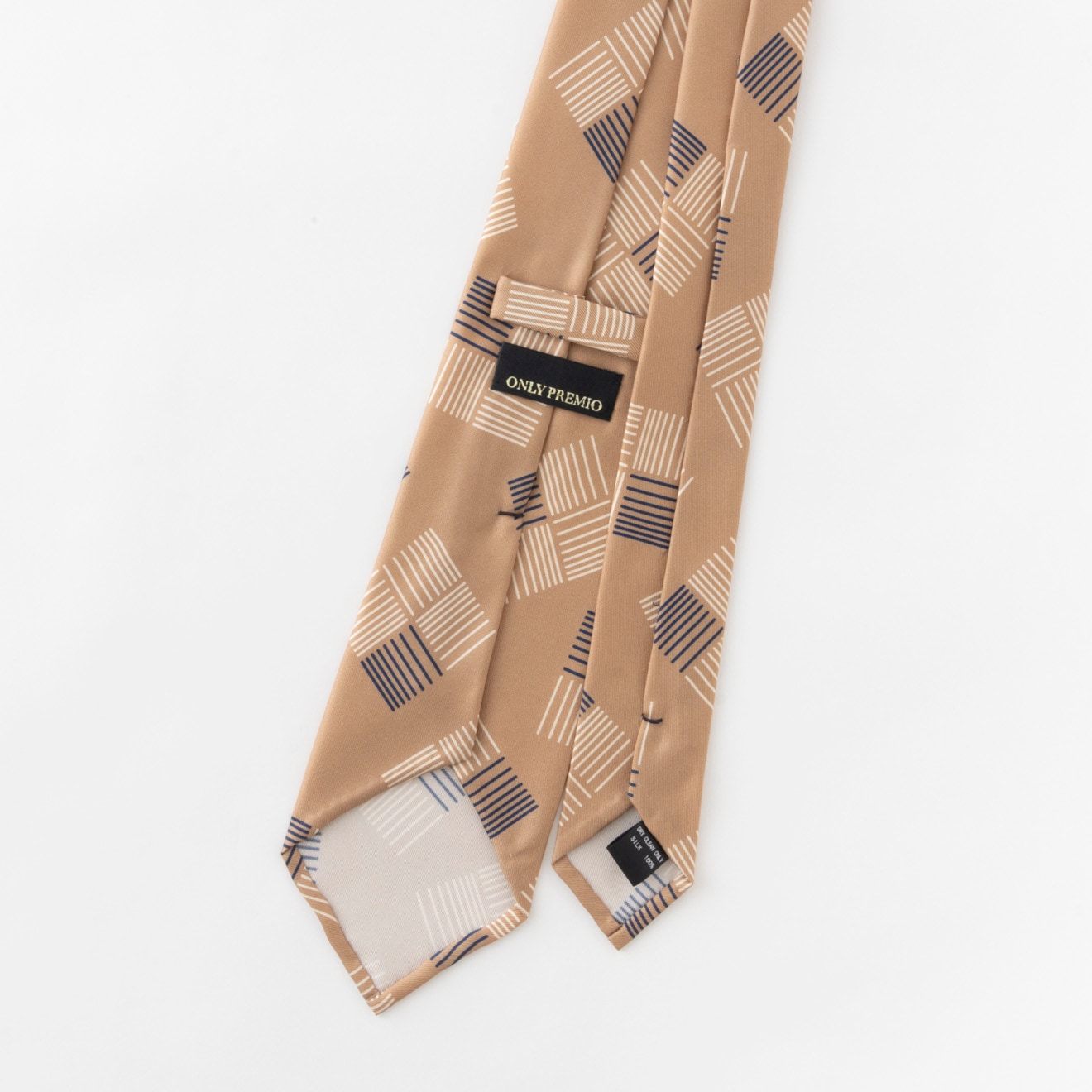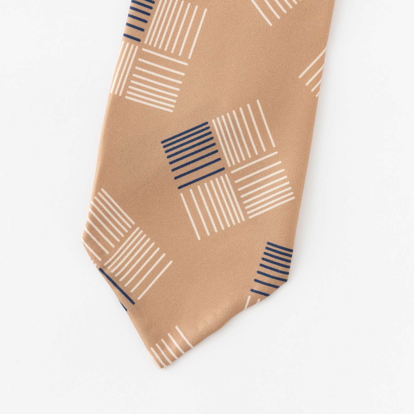 スクエアを基調にしたモチーフ柄を配したネクタイ。