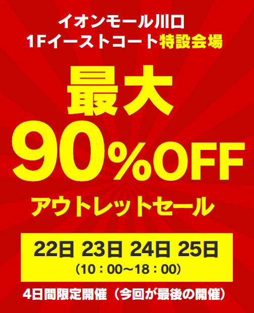 4日間限定|最大90%OFFアウトレットセール ※川口店