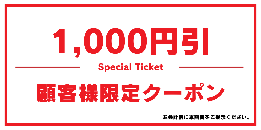 会員様のみ、ご利用いただける顧客様限定1,000円OFFクーポンです。